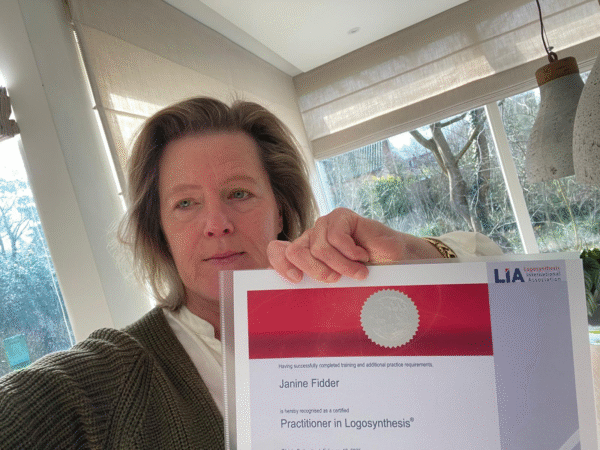 Sinds begin maart heeft Nederland een nieuwe LIA-gecertificeerde Logosynthese Practitioner. Janine Fidder heeft in de afgelopen jaren alle onderdelen van het Practitioner-curriculum doorlopen. Naast de Logosynthese Basistraining heeft zij verdiepingsseminars gevolgd over relaties, angst en trauma en de levensmissie en hun competenties aangescherpt tijdens oefengroepen en supervisies. In de eindopdracht heeft Janine haar expertise overtuigend aangetoond. Van harte proficiat Janine!